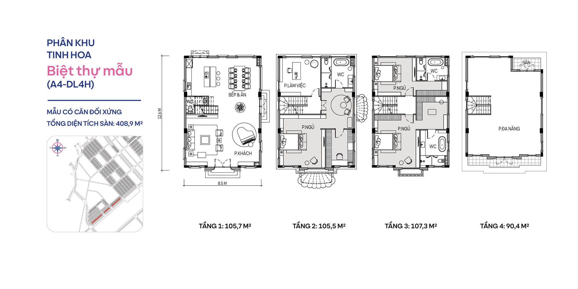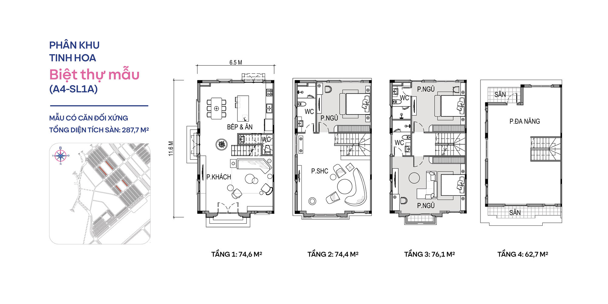 - Biệt thự tứ lập: 80 căn